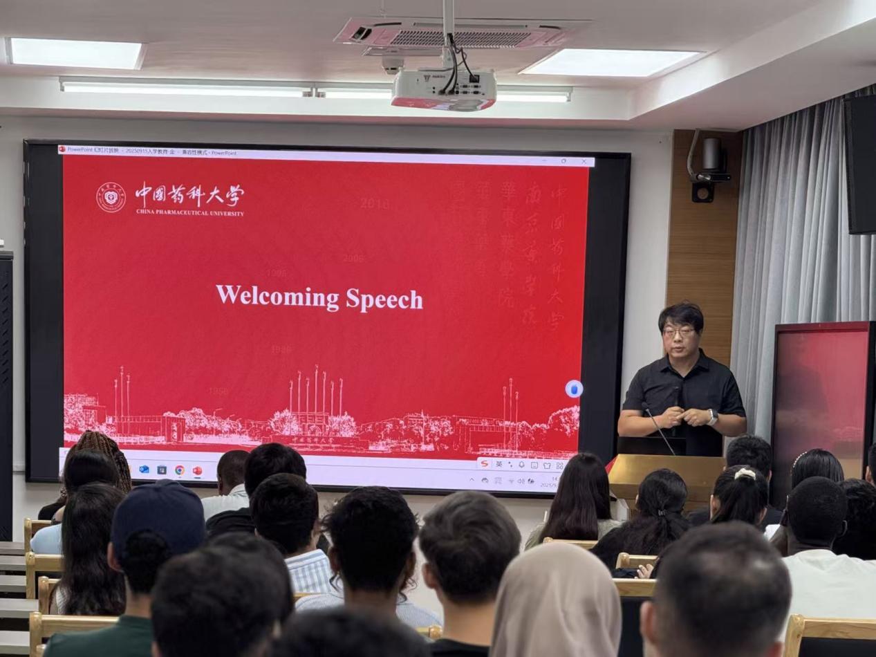 On the afternoon of September 15, 2025, the International Education College of China Pharmaceutical University held a welcome meeting for international freshmen and the opening ceremony of the Freshmen Quality Development Camp in Classroom G11-106 at the Jiangning Campus. The vice dean of the International Education College attended the ceremony and delivered a welcome speech, while staff from various departments of the college participated and interacted with the new students.